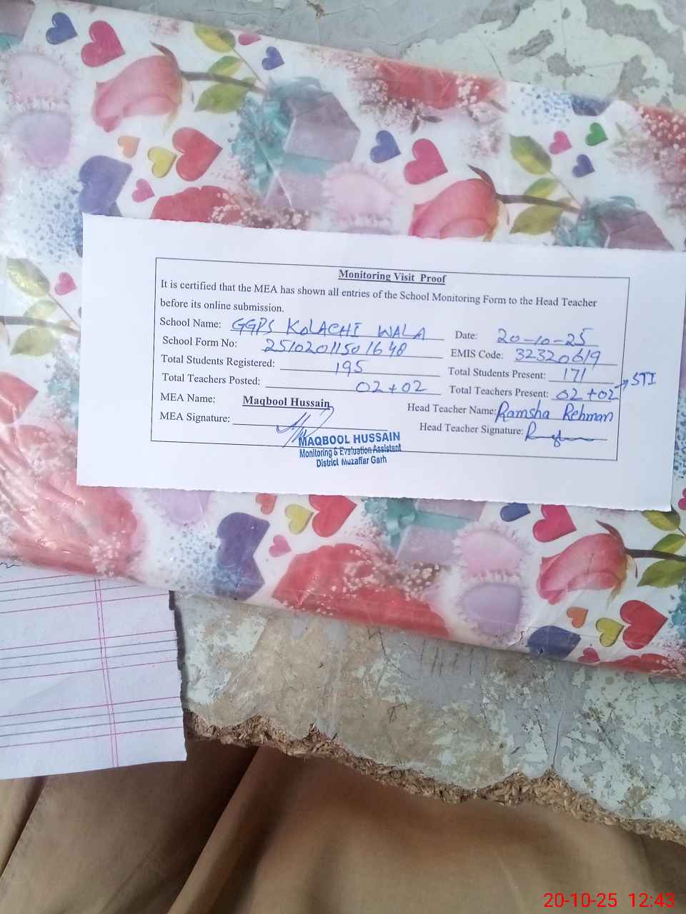 | EMIS Code: 32320619 | Name of School: GGPS KOLACHI WALA | |||