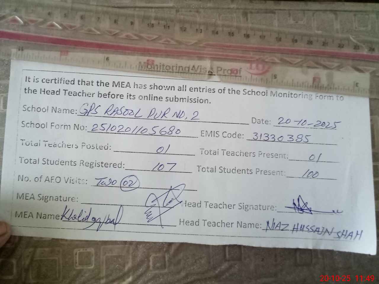 | EMIS Code: 31330385 | Name of School: GPS RASOOL PUR NO. 2 | |||