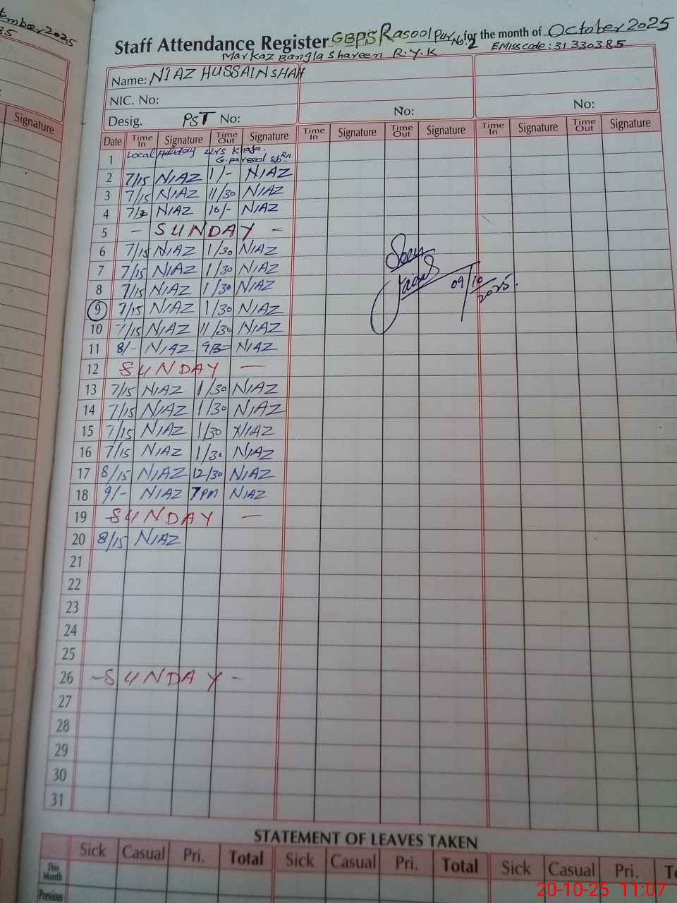 | Name: NI**** HU**** SH**** Designation: (School Headmaster's/Headmistress's) PST/PTC/JV Phone/Cell Number: 03**** |