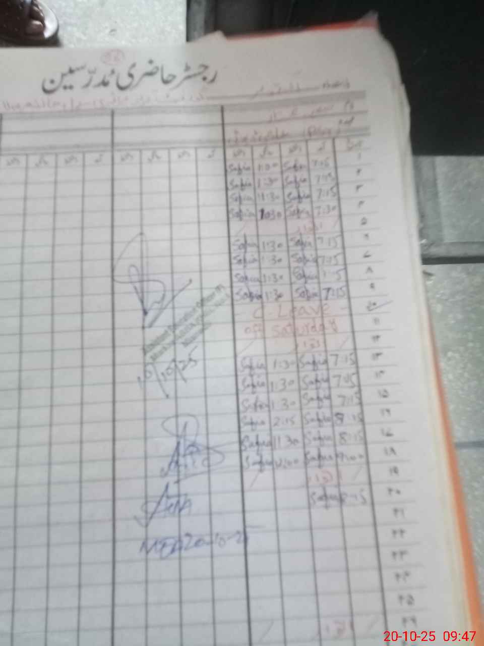 | CNIC | Full Name | Designation | R/C | Absence During Last Calender Month |