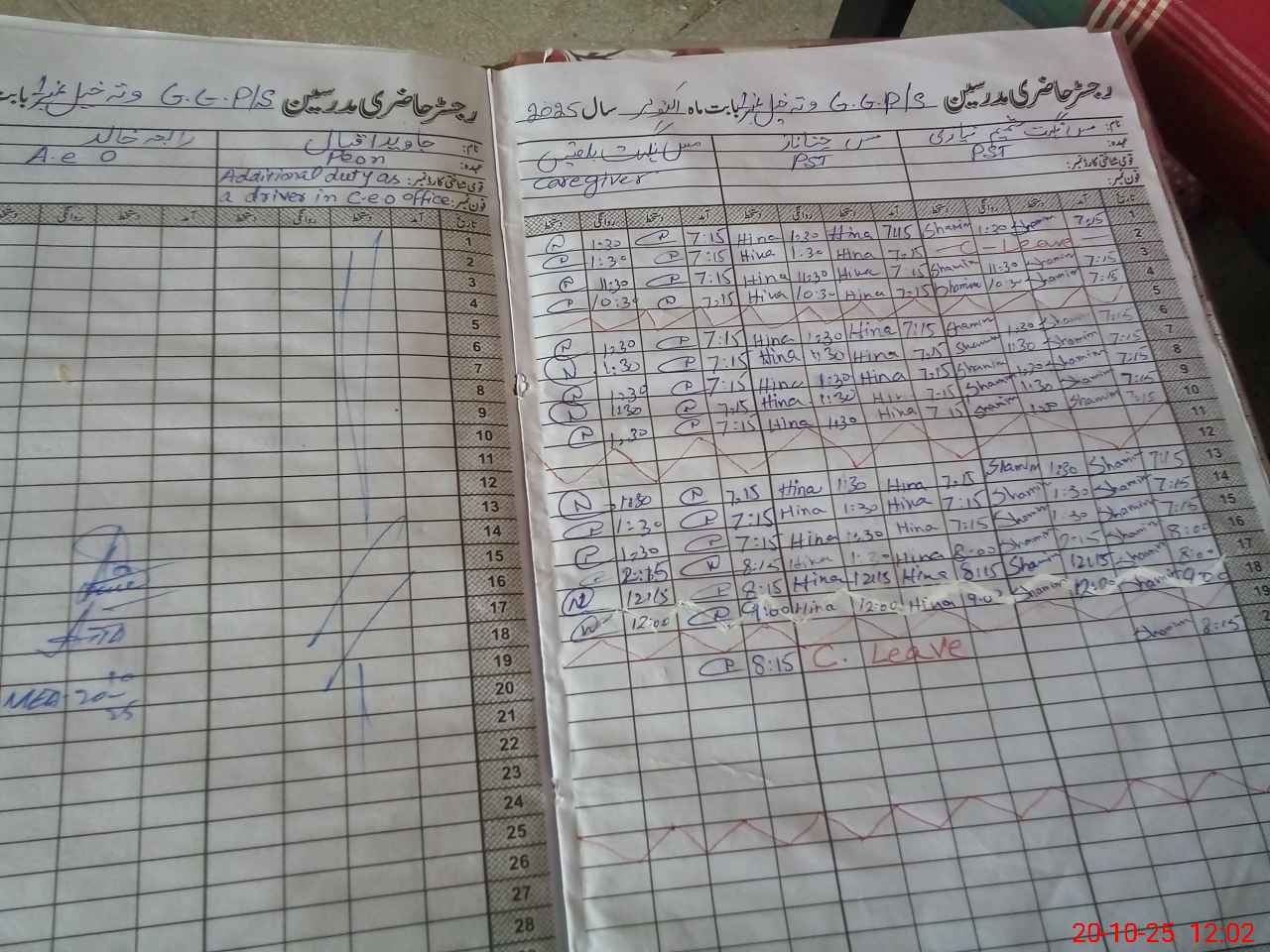 | CNIC | Full Name | Designation | R/C | Absence During Last Calender Month |