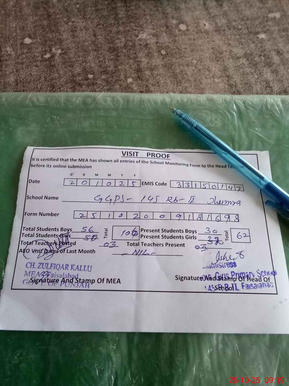 | EMIS Code: 33150147 | Name of School: GGPS CHAK NO 145 RB II | |||