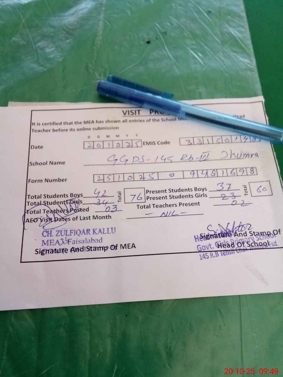 | EMIS Code: 33150148 | Name of School: GGPS CHAK NO 145 RB 111 | |||