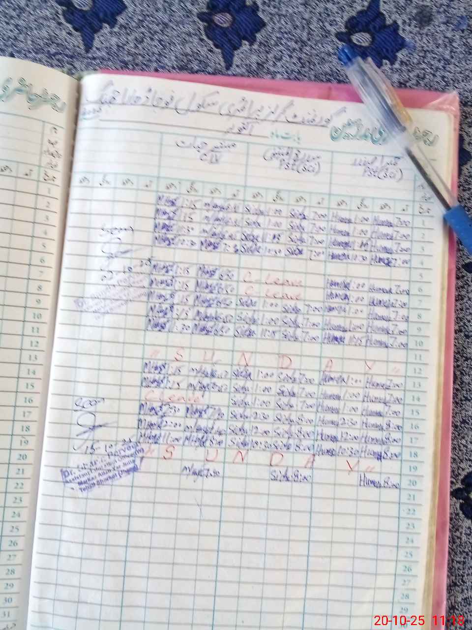 | CNIC | Full Name | Designation | R/C | Absence During Last Calender Month |