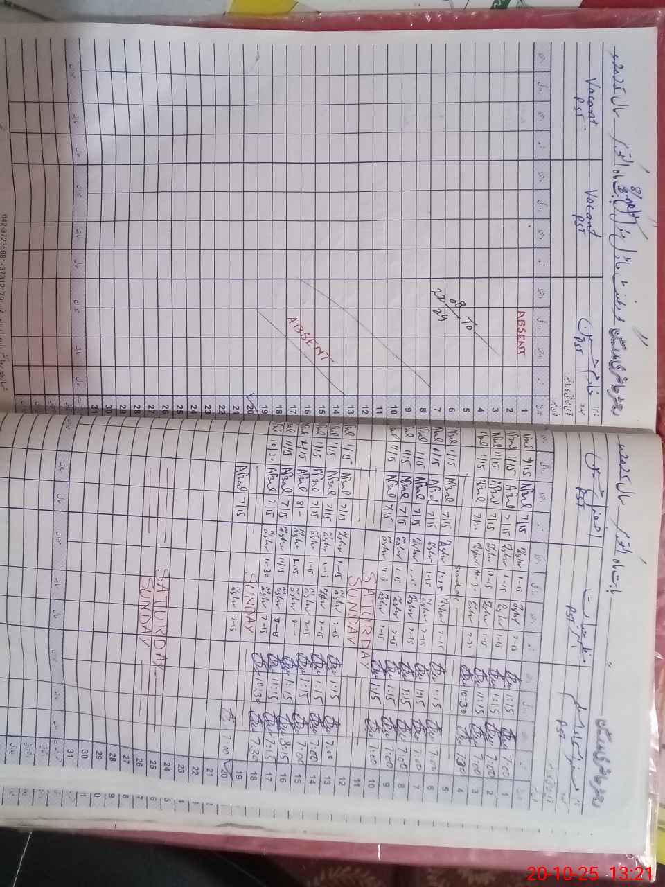 | CNIC | Full Name | Designation | R/C | Absence During Last Calender Month |