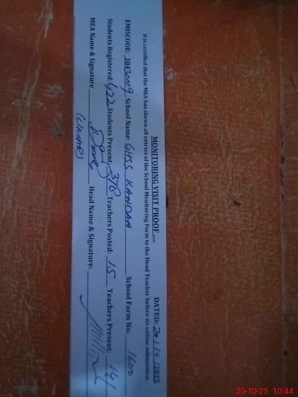 | EMIS Code: 38430009 | Name of School: GHSS KANDAN SHAHPUR | |||
