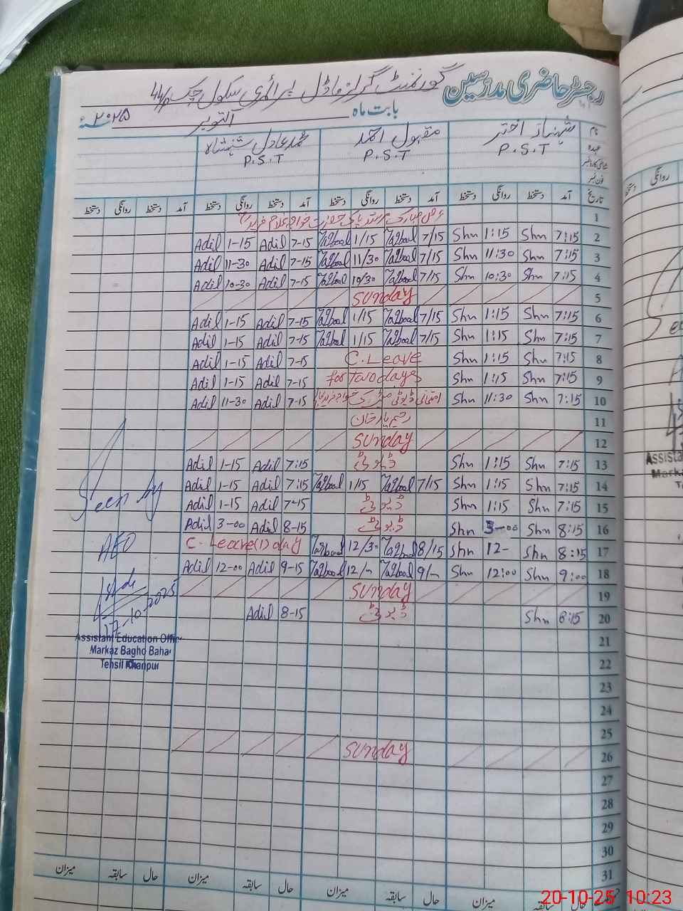 | Name: Sh**** Ak**** Designation: (School Headmaster's/Headmistress's) PST Phone/Cell Number: 03**** |