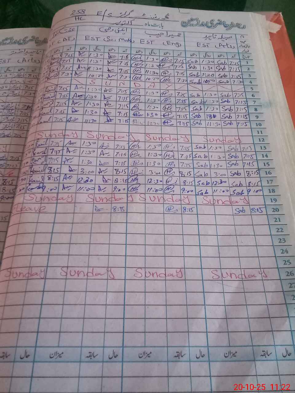 | CNIC | Full Name | Designation | R/C | Absence During Last Calender Month |