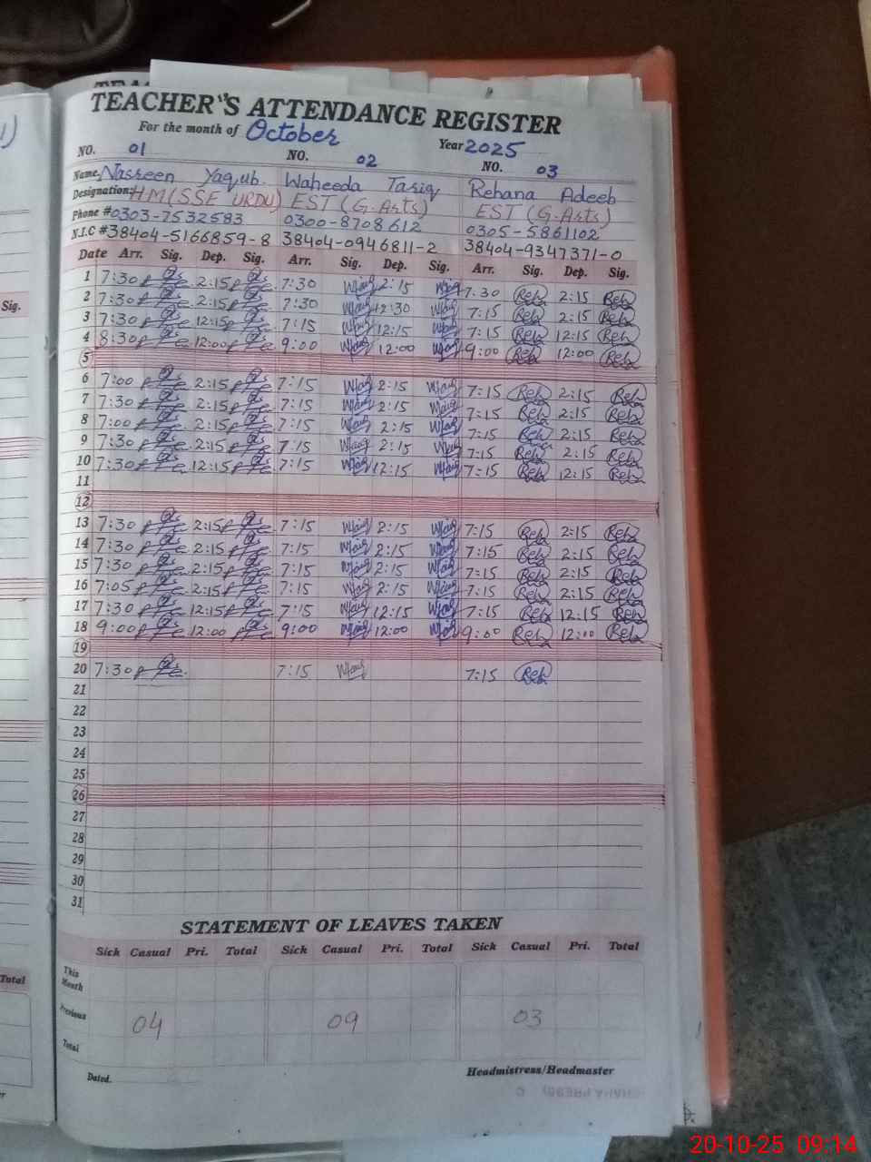 | Name: NA**** YA**** Designation: (School Headmaster's/Headmistress's) SSE(ARTS) Phone/Cell Number: 03**** |