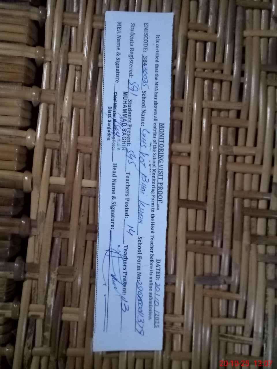 | EMIS Code: 38430035 | Name of School: GHS KOT BHAI KHAN SHAH PUR | |||