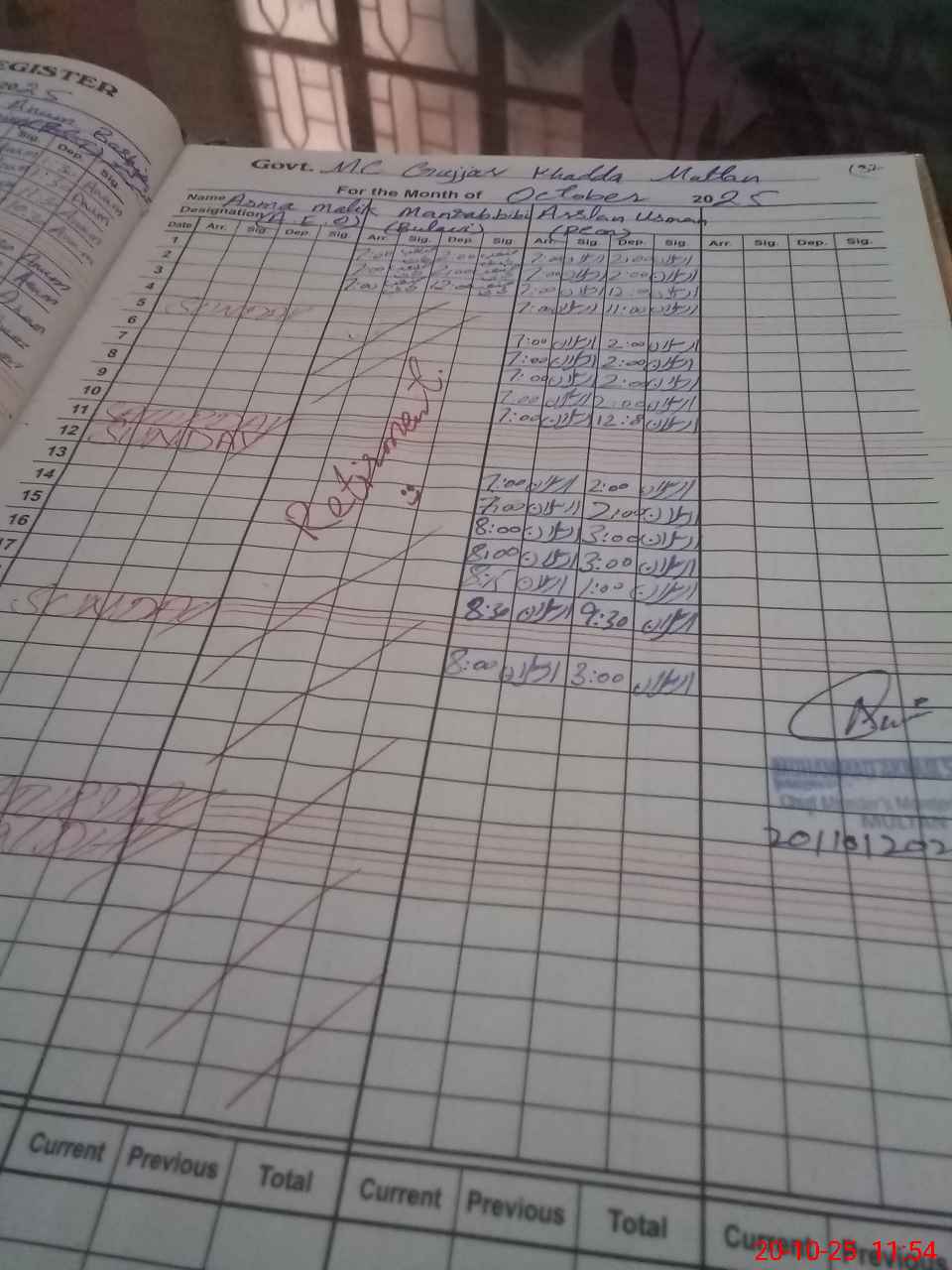| CNIC | Full Name | Designation | R/C | Absence during last cal. month |