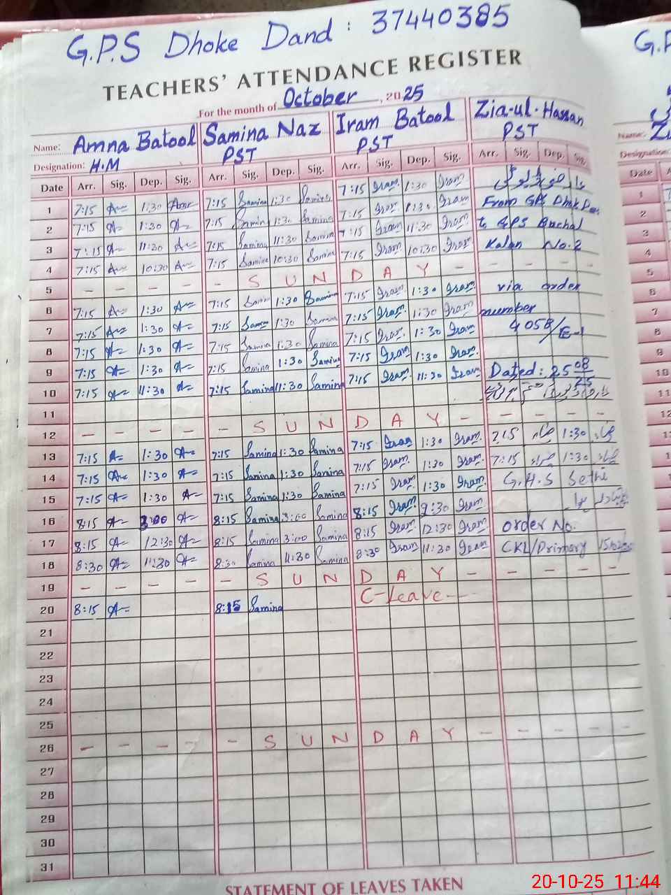 | Name: Za**** Iq**** Ae**** Designation: (School Headmaster's/Headmistress's) PST Phone/Cell Number: 03**** |