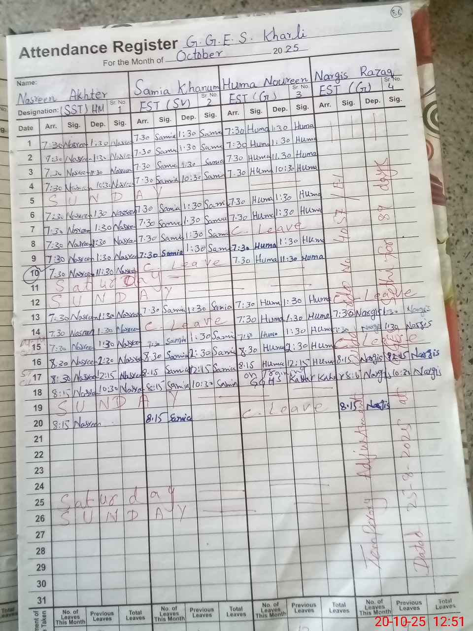 | 56**** | Ar**** Sa**** | EST(GENERAL) | Temporary | 0 | 0 | 0 | 0 | 0 | 0 | 0 | 0 | 0 | Casual |