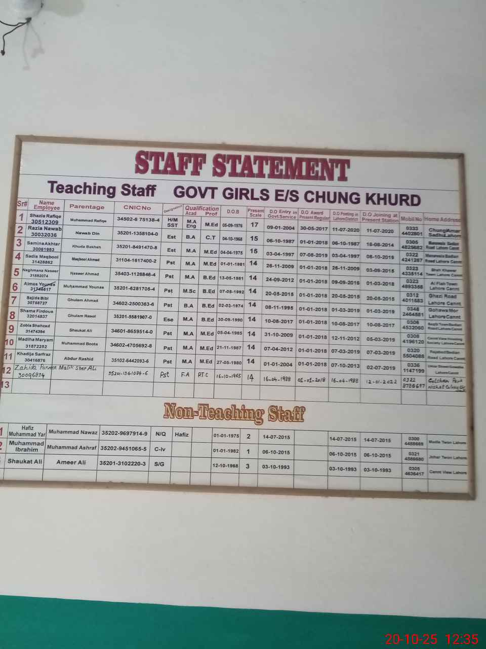 | EMIS Code: 35210917 | Name of School: GGES CHUNG KHURD (DEFENCE) | |||