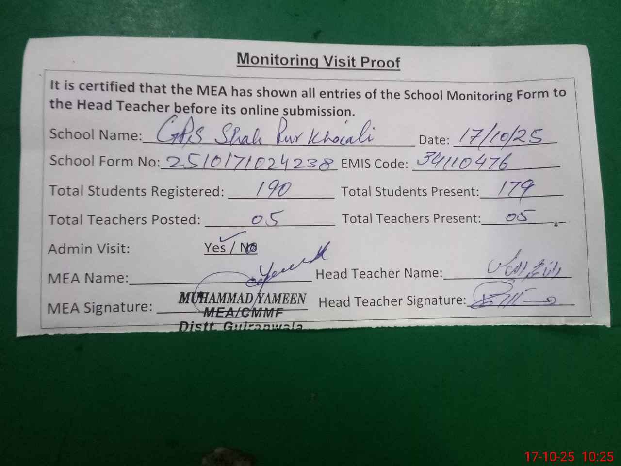 | EMIS Code: 34110476 | Name of School: GPS SHAH PUR KHIALI | |||