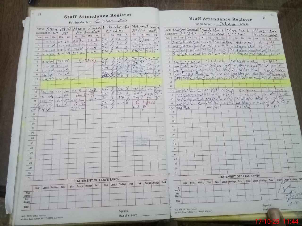 | 34**** | Al**** Ij**** | PST | Regular | 0 | 0 | 0 | 0 | 0 | 0 | 0 | 0 | 0 | Exam Duty |