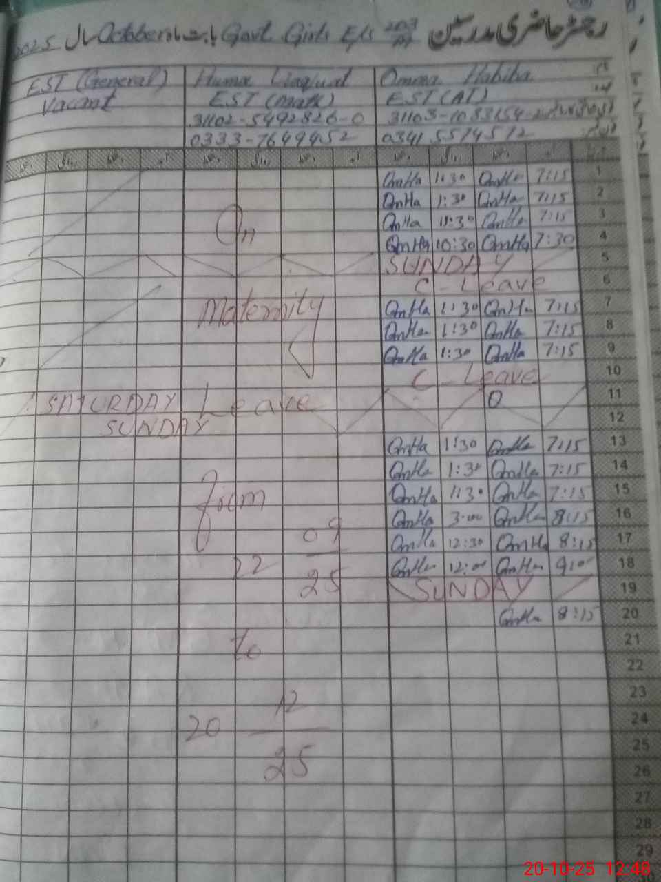 | Name: Um**** Ha**** Designation: (School Headmaster's/Headmistress's) EST AT Phone/Cell Number: 03**** |