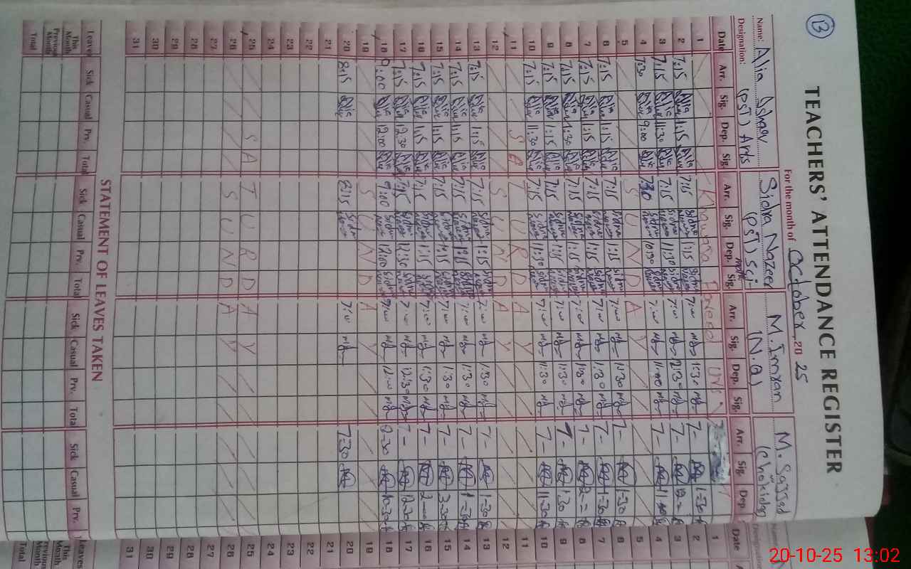 | Attendance Register | Head Teacher | MEA with School | Visit Proof |