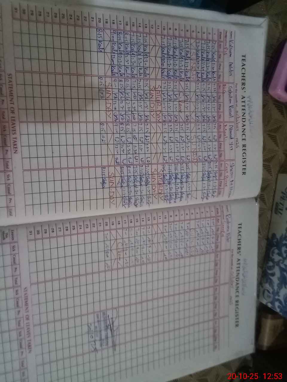 | Leave | Duty | Absent | Maternity | Medical | Ex- Pak |