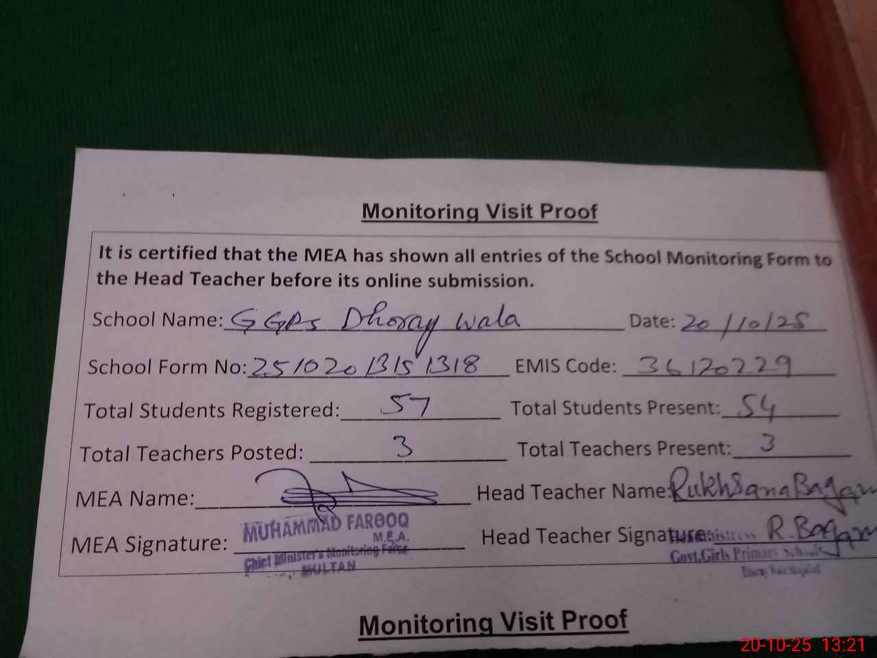| EMIS Code: 36120229 | Name of School: GGPS DHORAY WALA NO. 2 SHUJABAD | |||