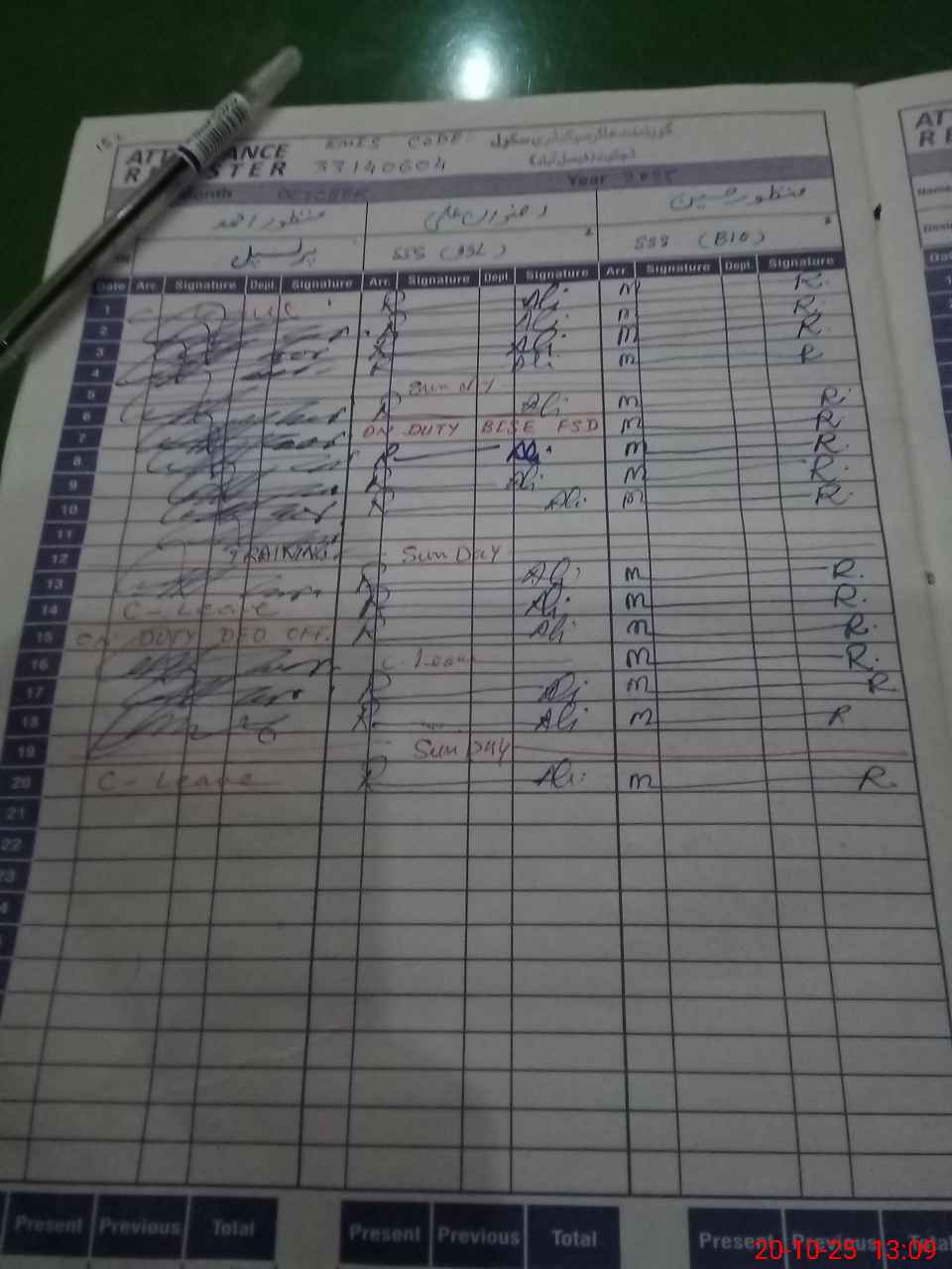 | CNIC | Full Name | Designation | R/C | Absence during last cal. month |