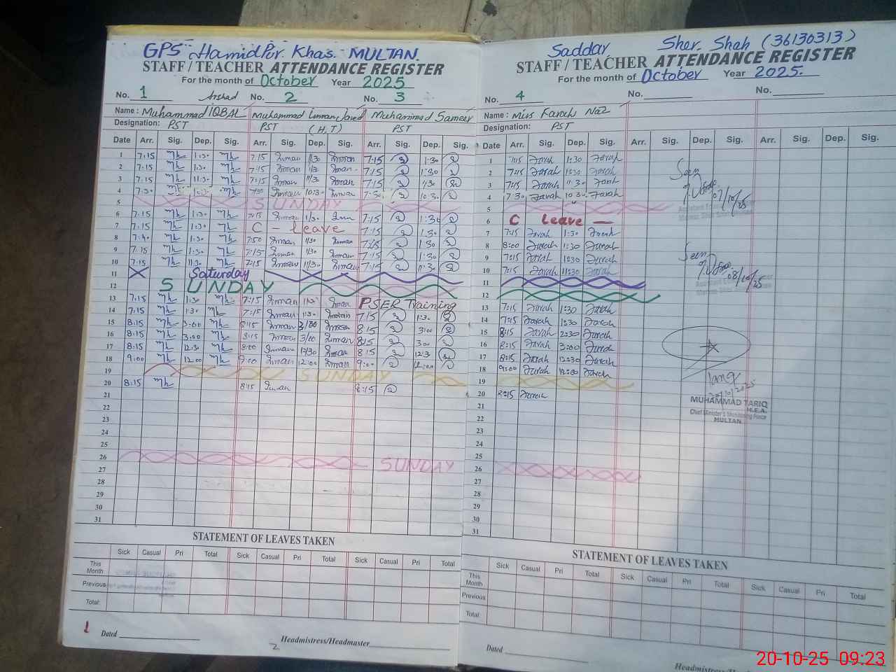 | Remarks (Use Separate Page if Required): PST NARGIS PARVEEN RETIRED ON 18TH DECEMBER 2024 BUT HER NAME STILL IN TEACHERS LIST STUDENTS ATTENDENCE LIST OF PREVIOUS SESSION | |||||