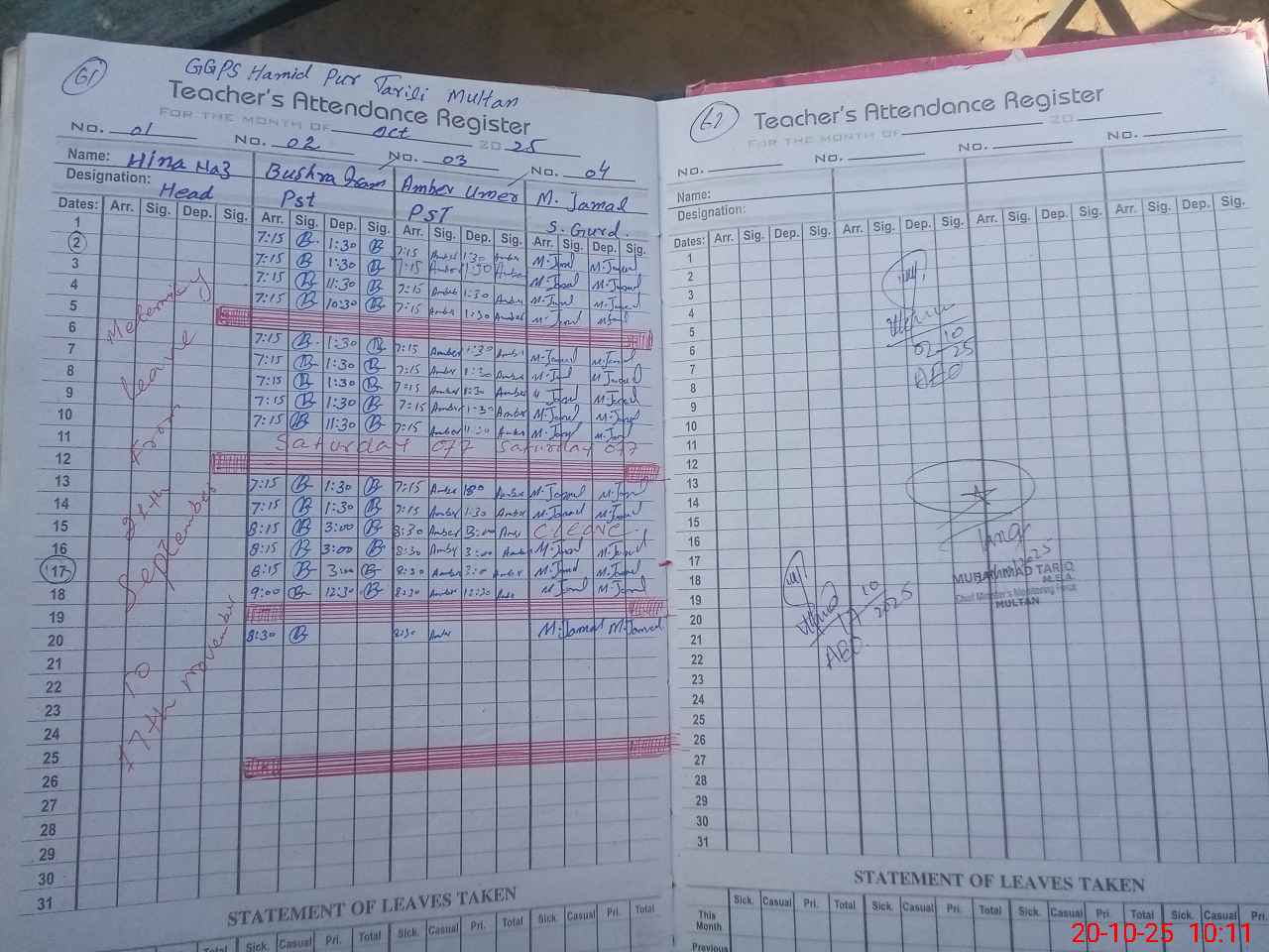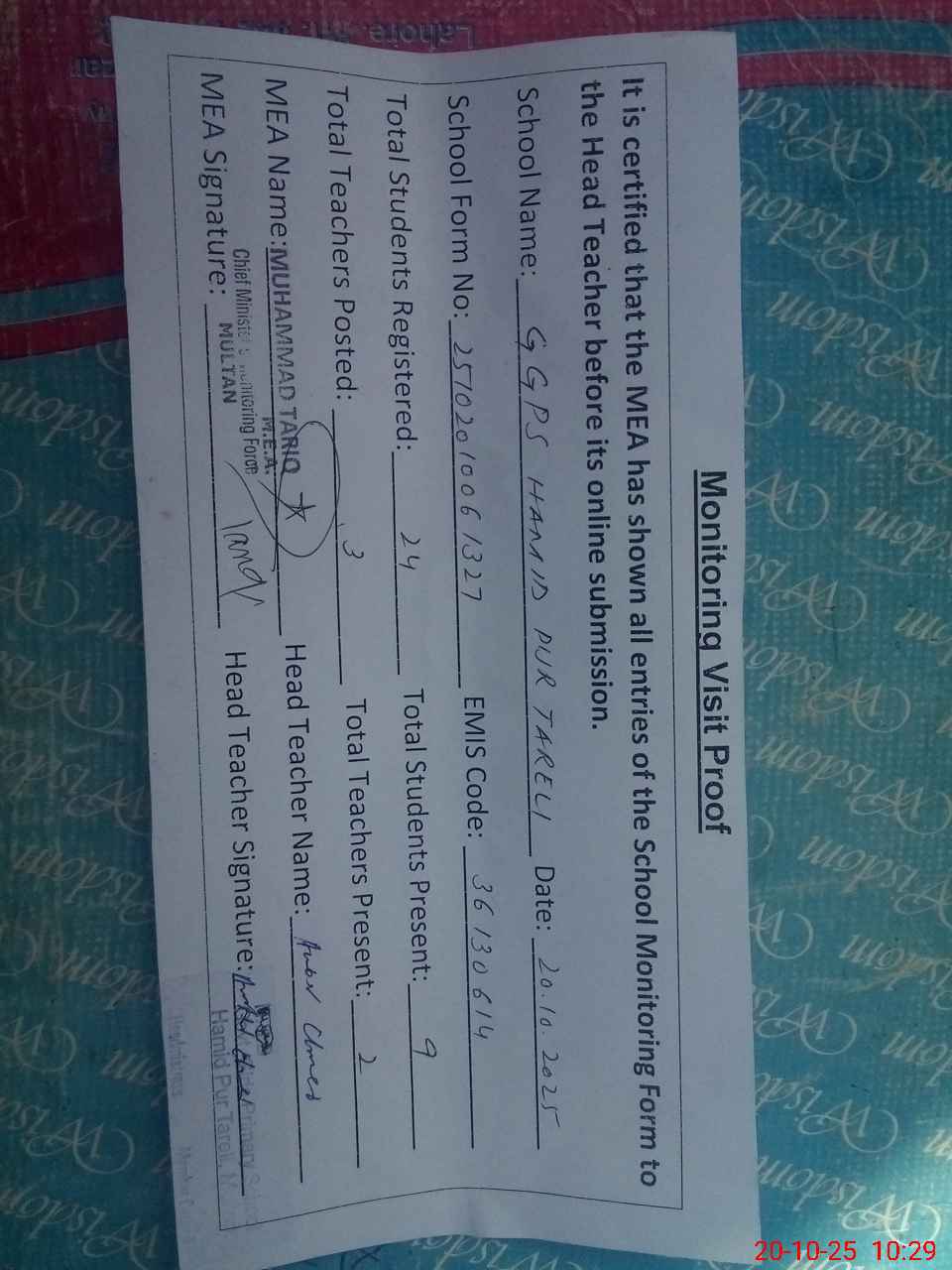 | EMIS Code: 36130614 | Name of School: GGPS HAMID PUR TARELI MULTAN | |||