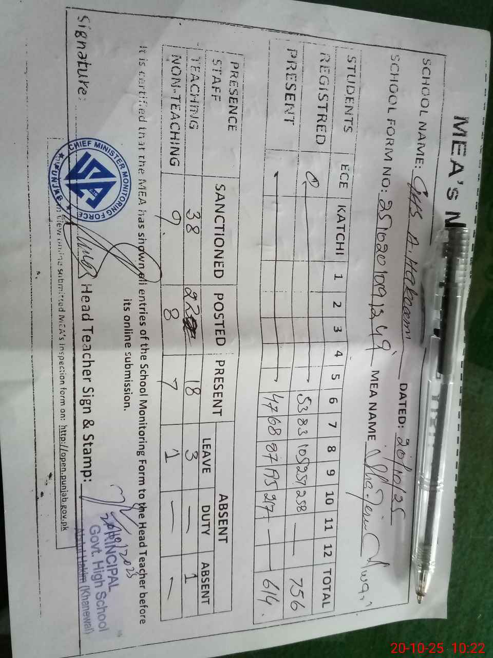 | EMIS Code: 36410021 | Name of School: GHS ABDUL HAKIM | |||