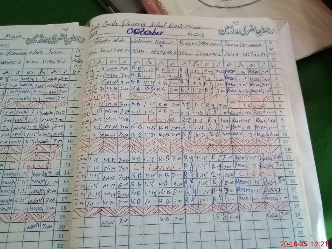 | Leave | Duty | Absent | Maternity | Medical | Ex- Pak |