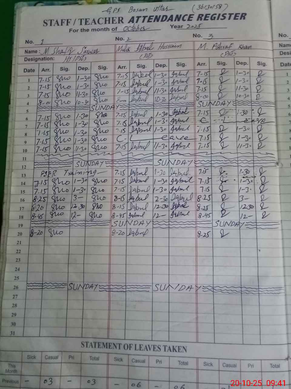 | EMIS Code: 36130158 | Name of School: GPS BOSAN UTTAR MULTAN | |||