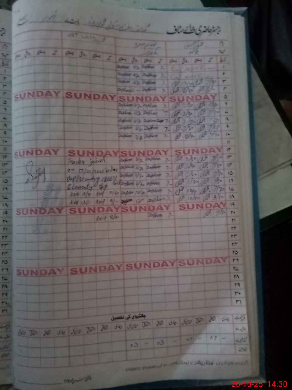 | CNIC | Full Name | Designation | R/C | Absence During Last Calender Month |