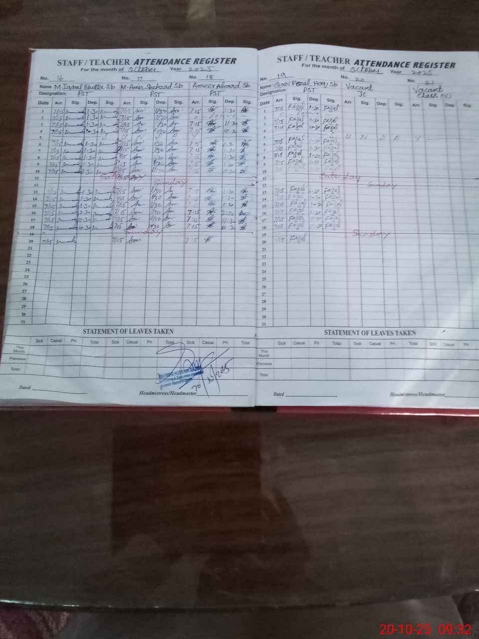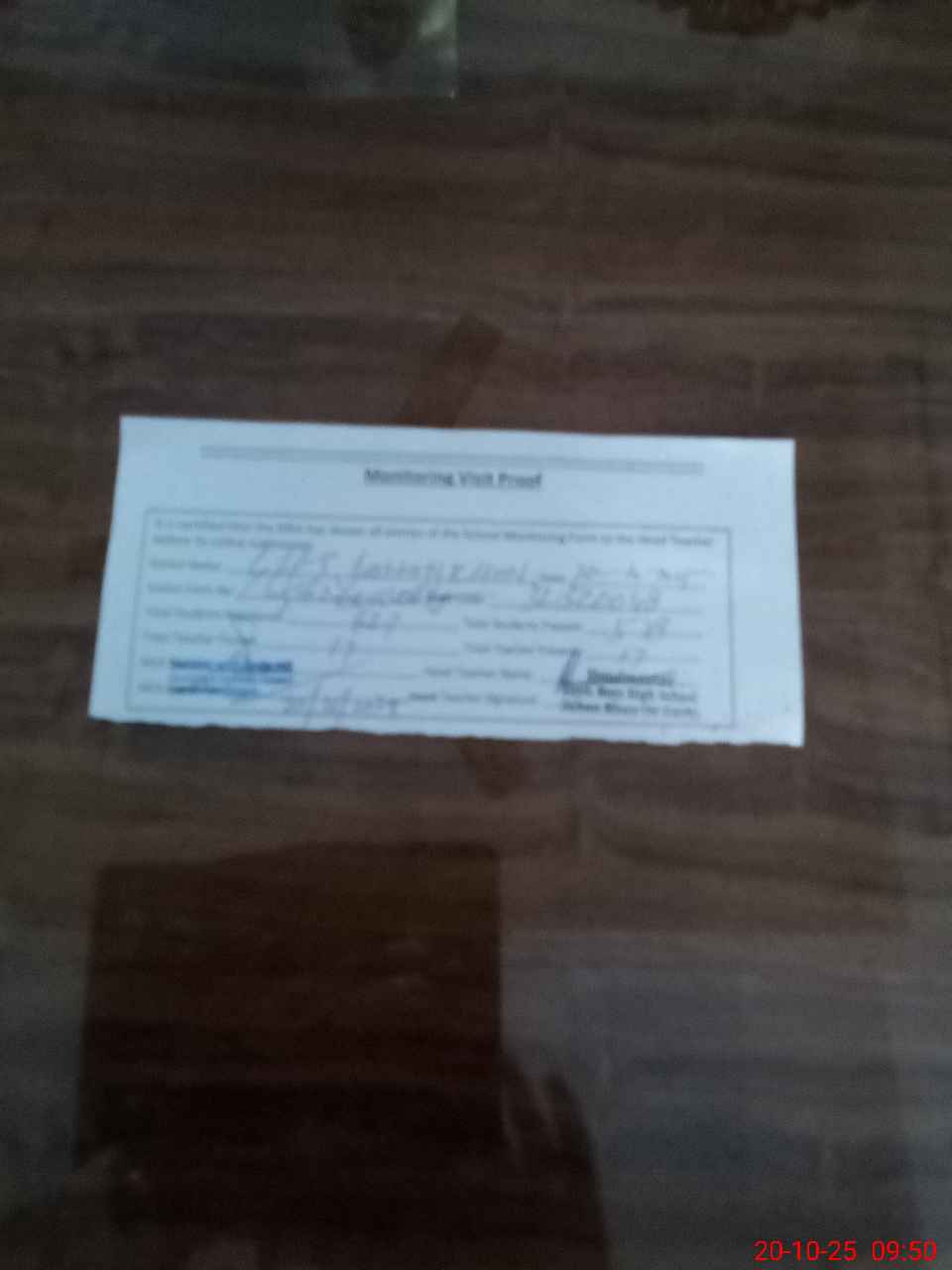 | Attendance Register | Head Teacher | MEA with School | Visit Proof |