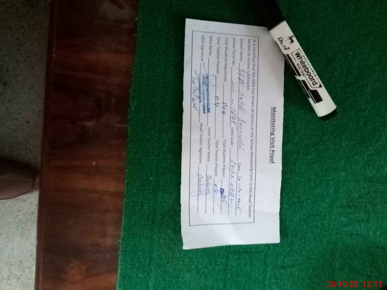 | Attendance Register | Head Teacher | MEA with School | Visit Proof |
