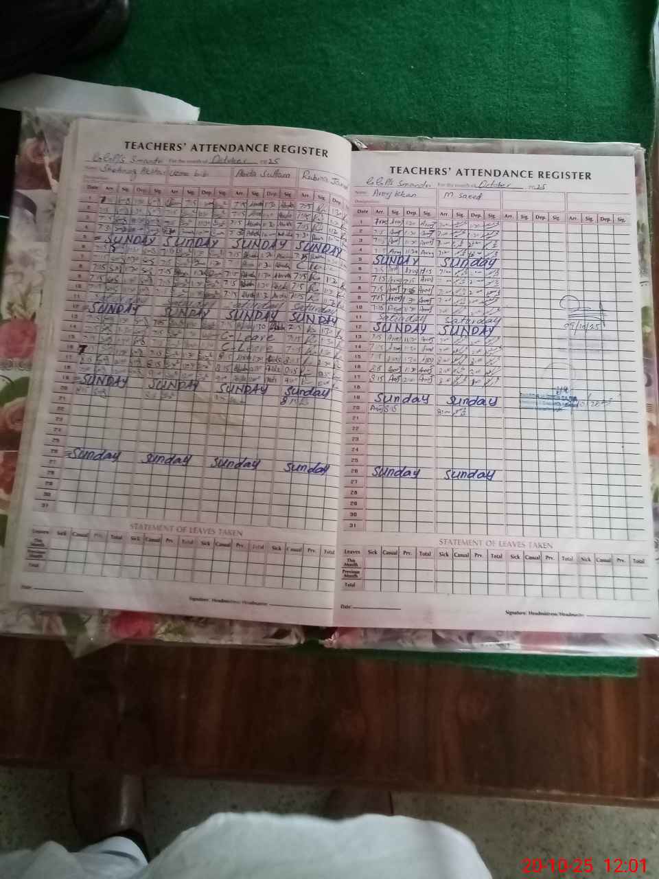 | Leave | Duty | Absent | Maternity | Medical | Ex- Pak |