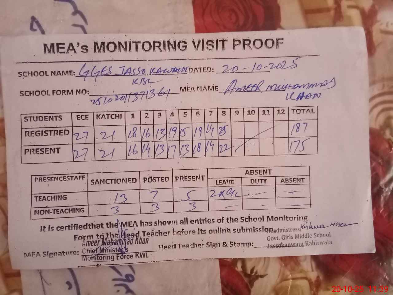 | EMIS Code: 36410109 | Name of School: GGES JASSO KANWAIN, SARAI SIDHU | |||