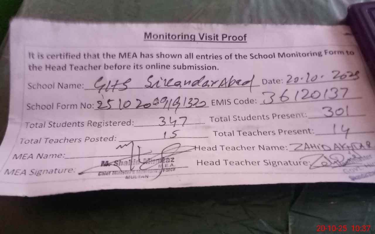 | EMIS Code: 36120137 | Name of School: GHS SIKANDER ABAD SHUJABAD | |||