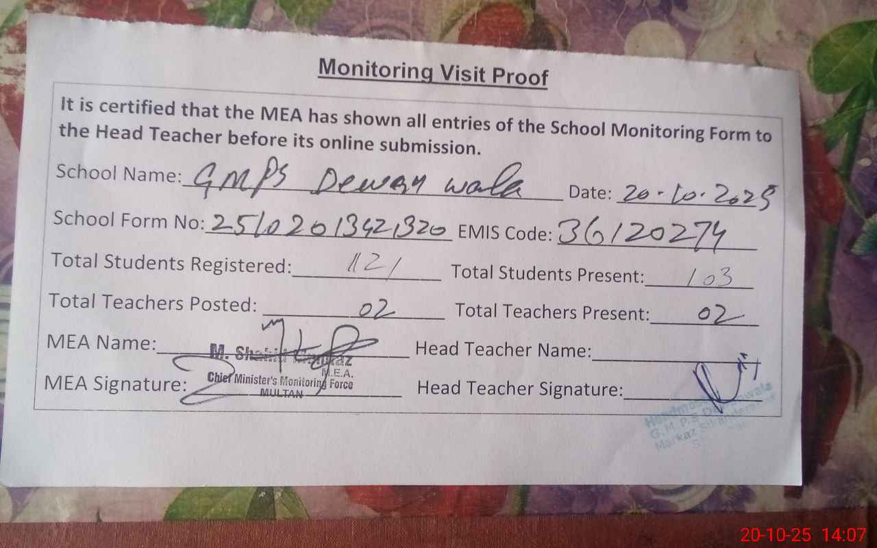 | EMIS Code: 36120274 | Name of School: GMPS DIWAN WALA | |||