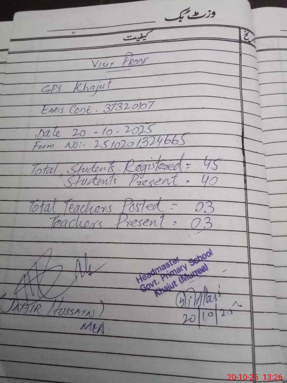 | EMIS Code: 37320107 | Name of School: GPS KHAJUT | |||