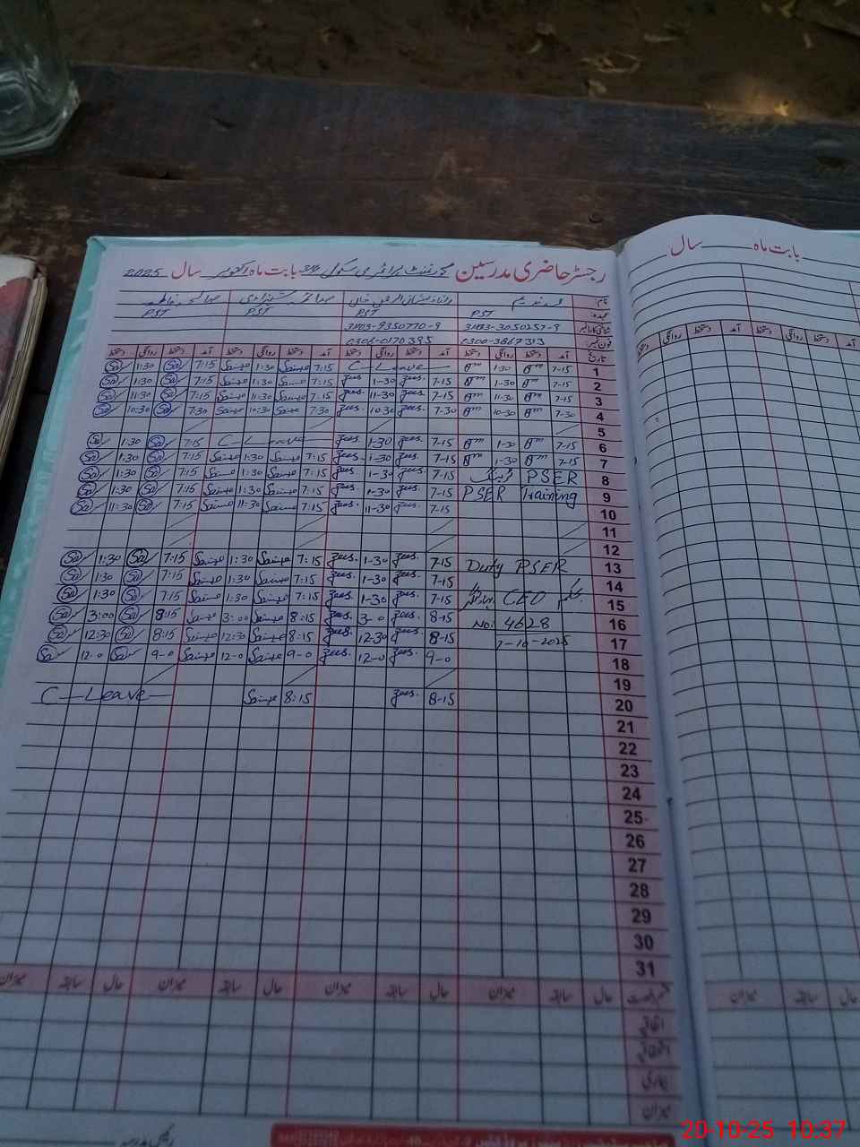| CNIC | Full Name | Designation | R/C | Absence During Last Calender Month |