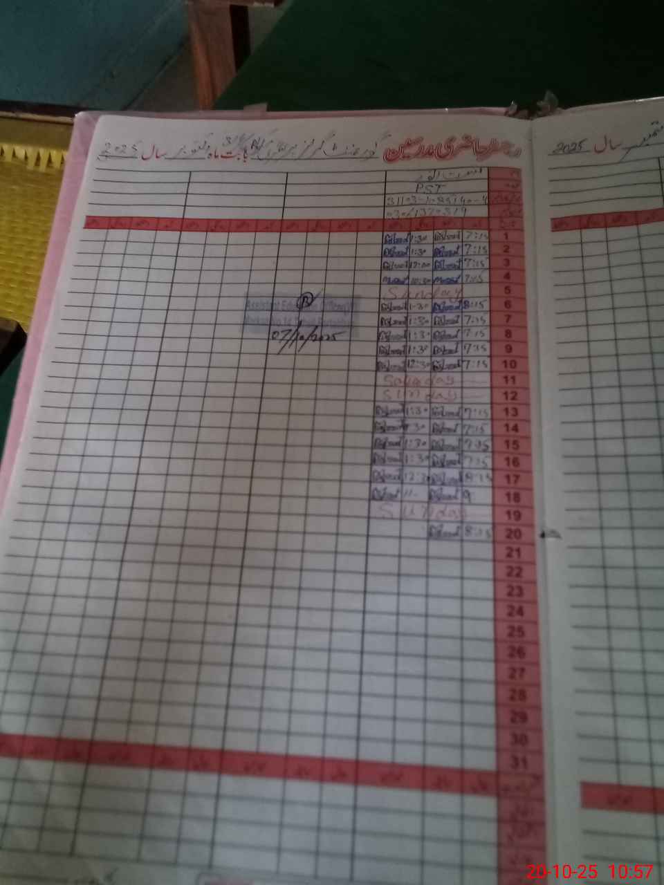 | CNIC | Full Name | Designation | R/C | Absence During Last Calender Month |