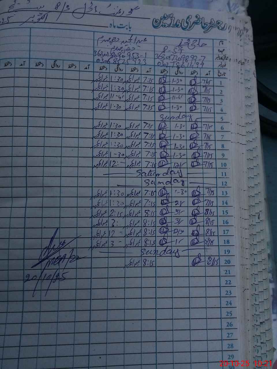 | CNIC | Full Name | Designation | R/C | Absence During Last Calender Month |