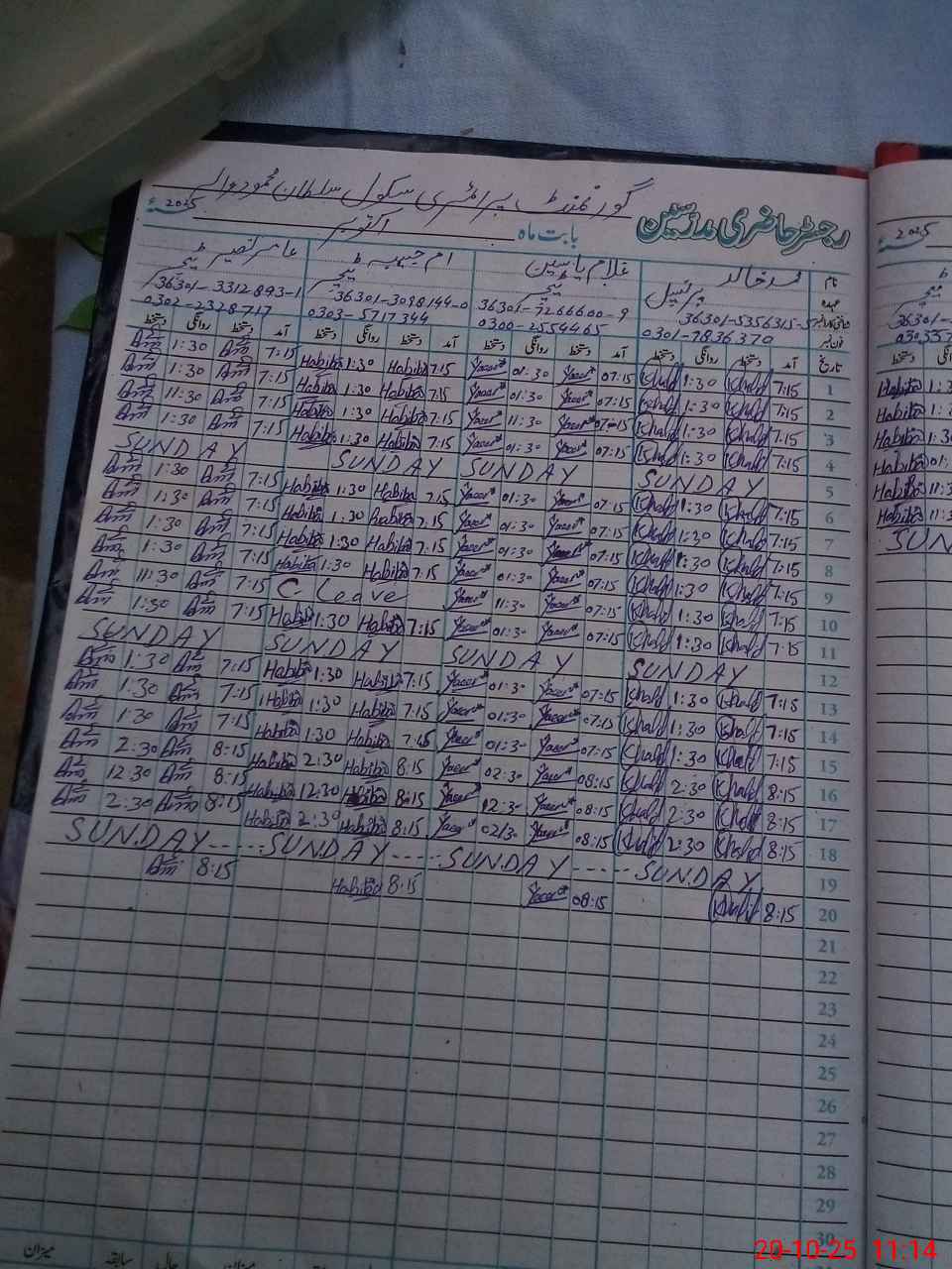 | Name: Mu**** Kh**** Designation: (School Headmaster's/Headmistress's) PS SP Phone/Cell Number: 03**** |