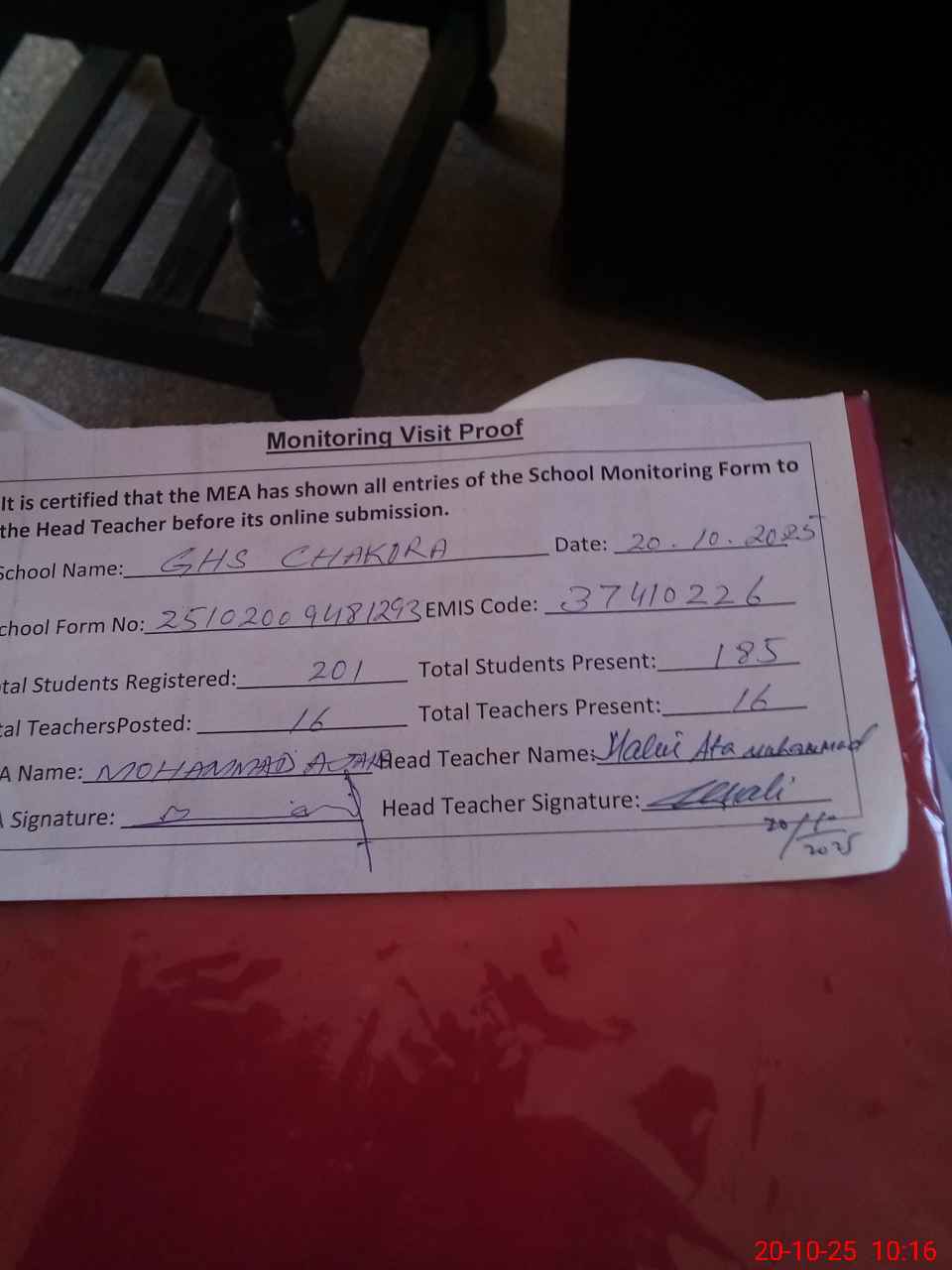 | EMIS Code: 37410226 | Name of School: GHS CHAKORA | |||