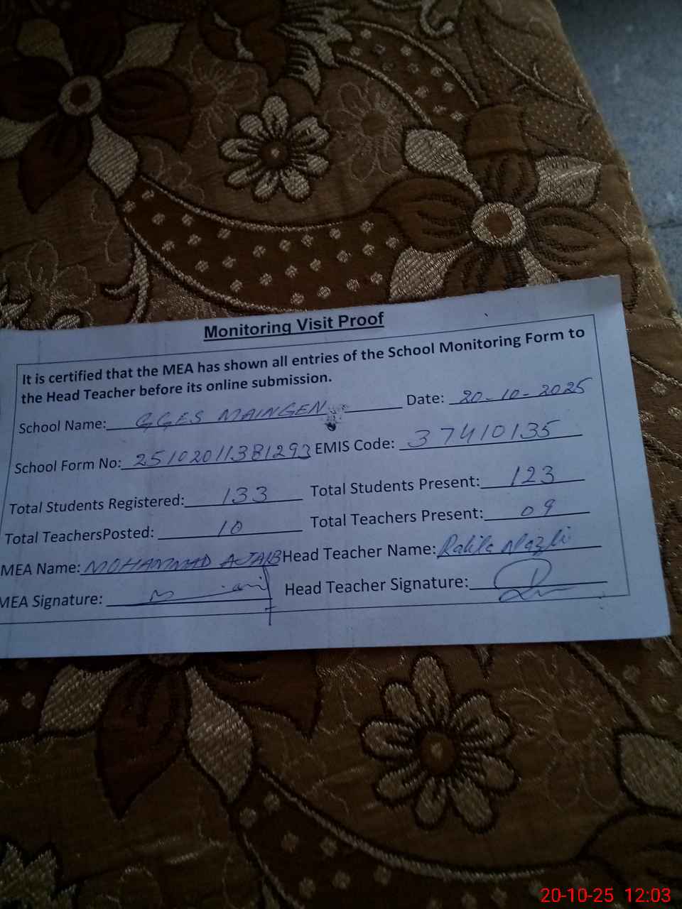 | EMIS Code: 37410135 | Name of School: GGES MAINGEN | |||