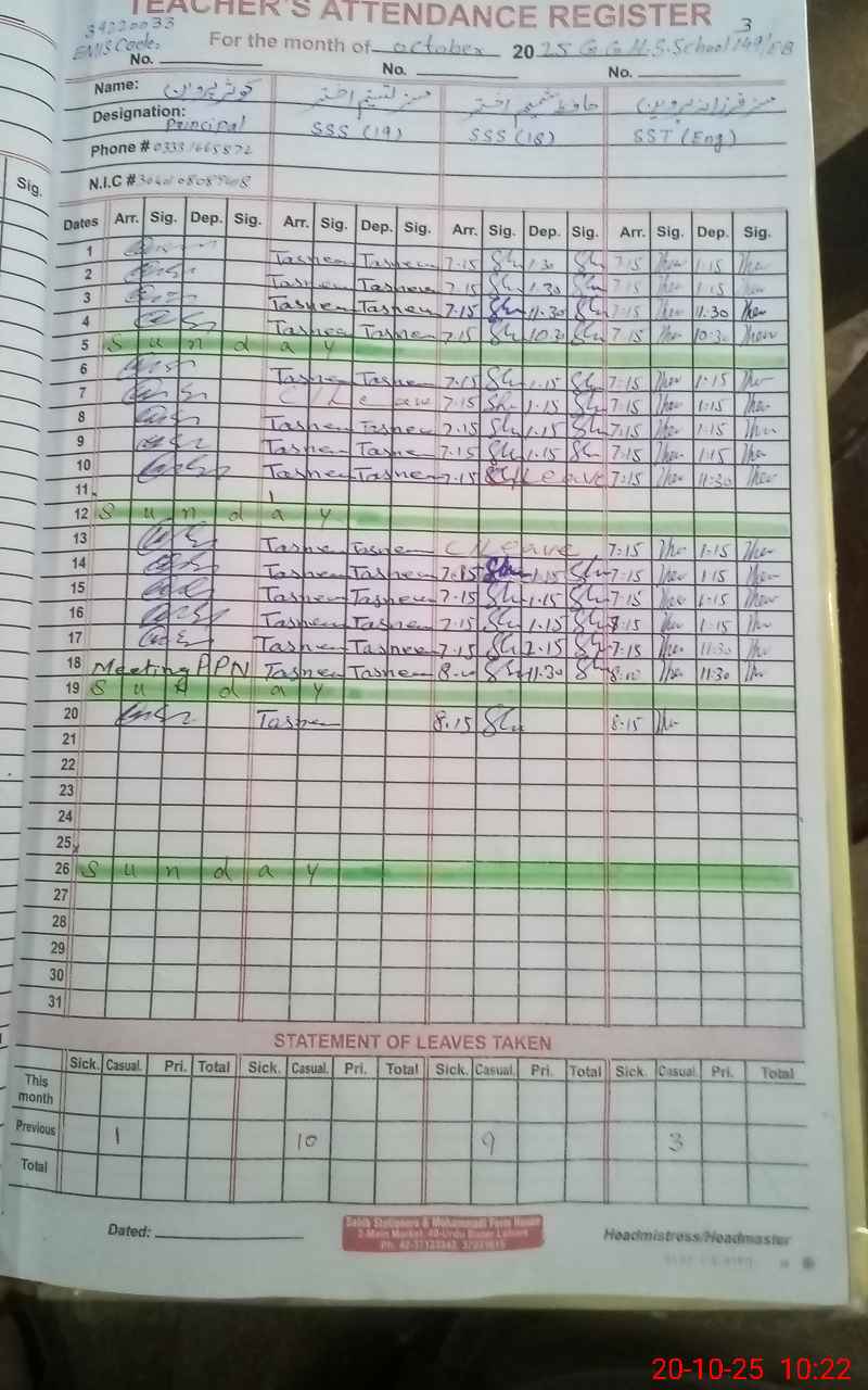| 36**** | AN**** AL**** DI**** | N Q | Regular | 0 | 0 | 30 | 0 | 0 | 0 | 0 | 0 | 0 | Absent (Un-Authorized) |