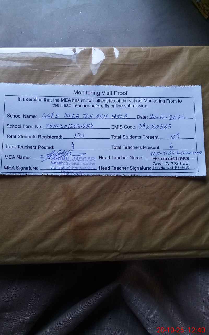 | EMIS Code: 39220383 | Name of School: GGPS 141 EB TEH ARIFWALA | |||