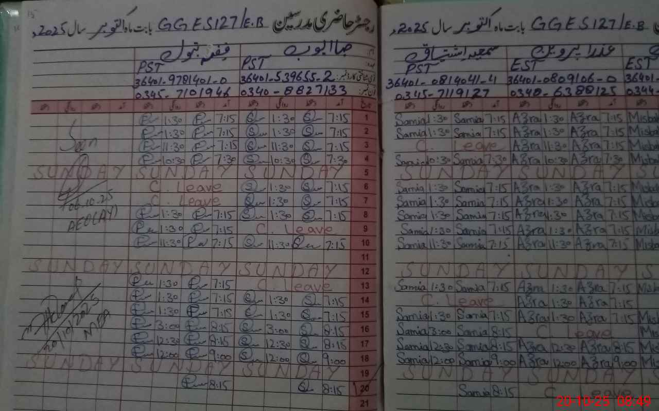 | CNIC | Full Name | Designation | R/C | Absence During Last Calender Month |