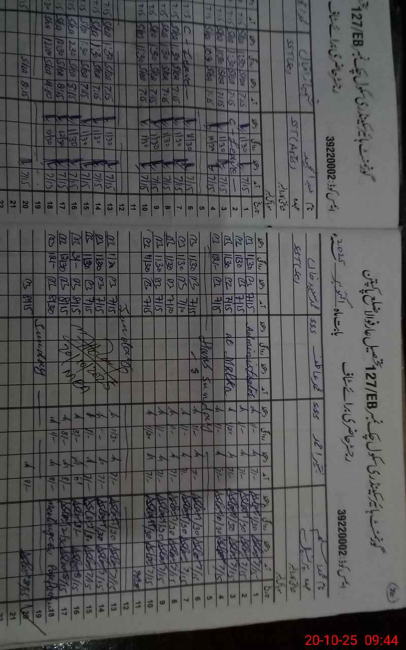 | CNIC | Full Name | Designation | R/C | Absence During Last Calender Month |