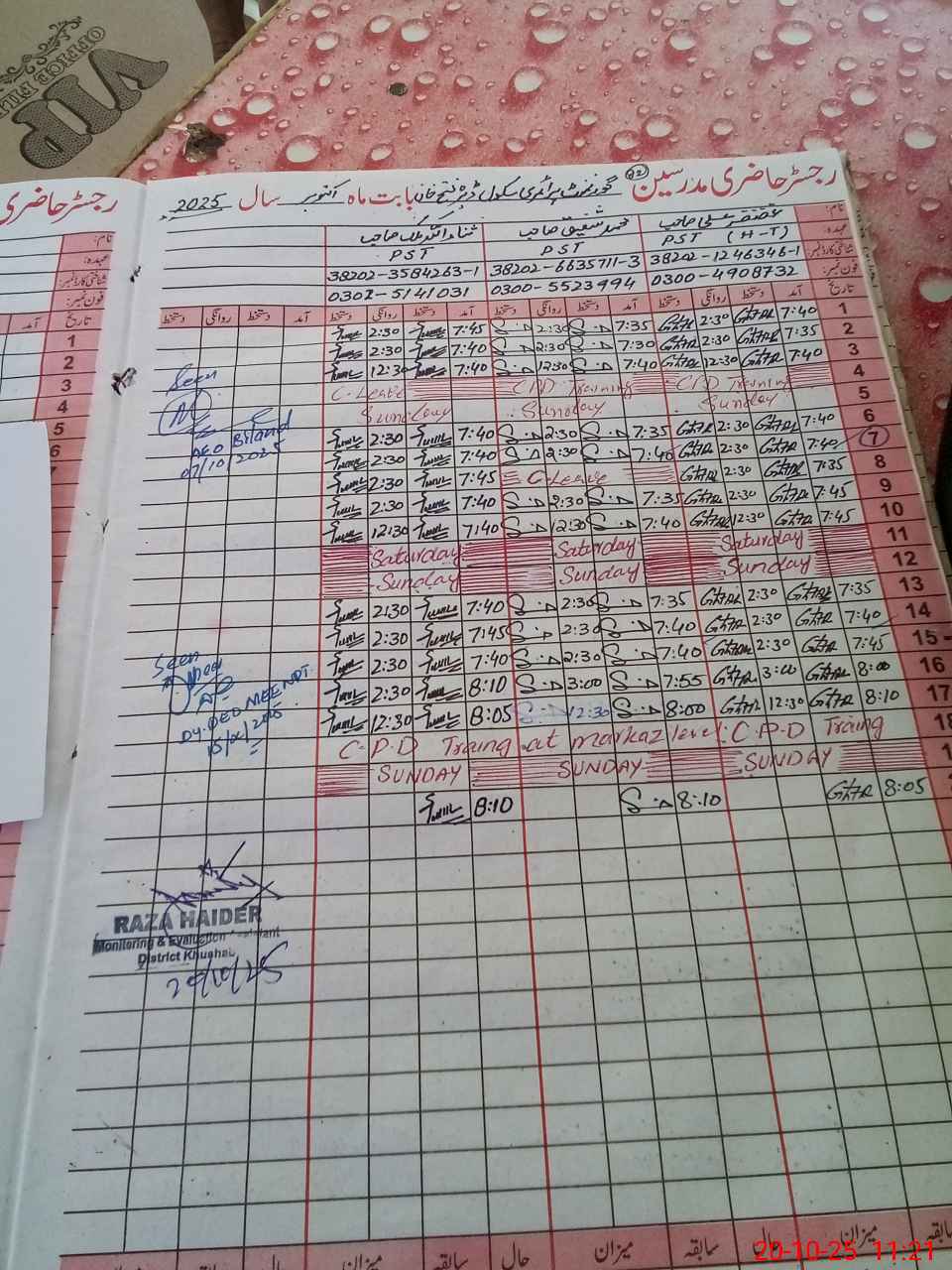 | Name: Gh**** Al**** Designation: (School Headmaster's/Headmistress's) PST Phone/Cell Number: 03**** |