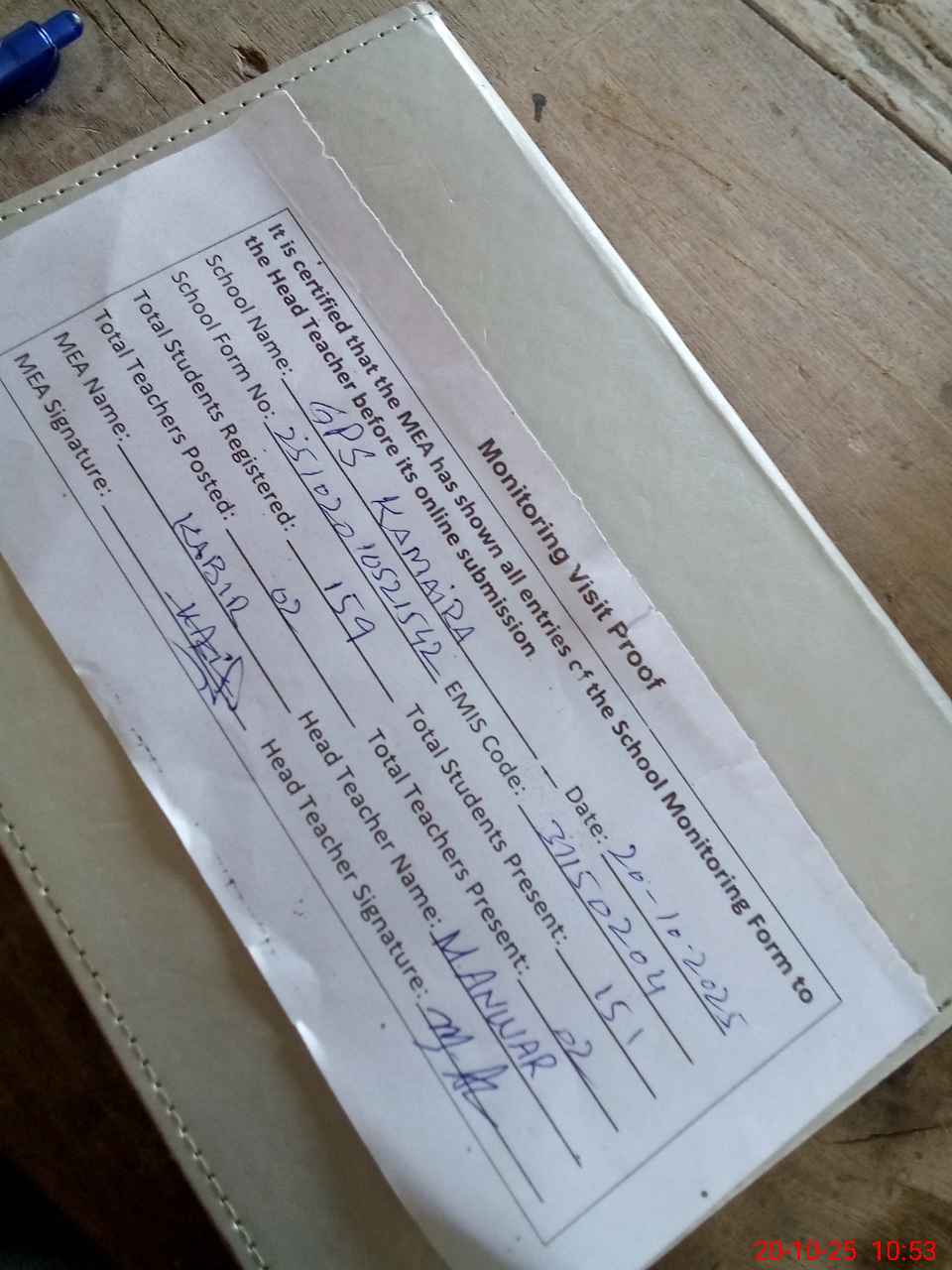 | EMIS Code: 31150204 | Name of School: GPS KAMAIRA | |||